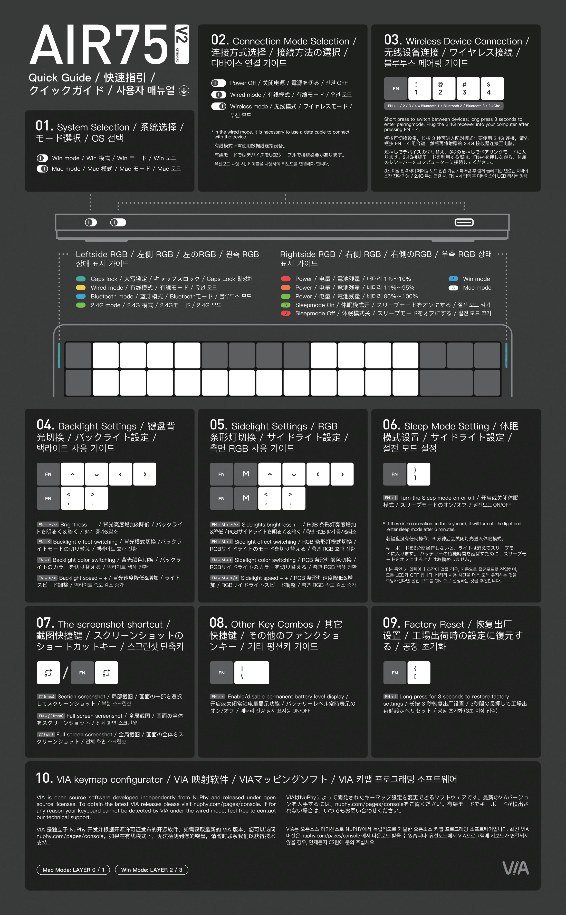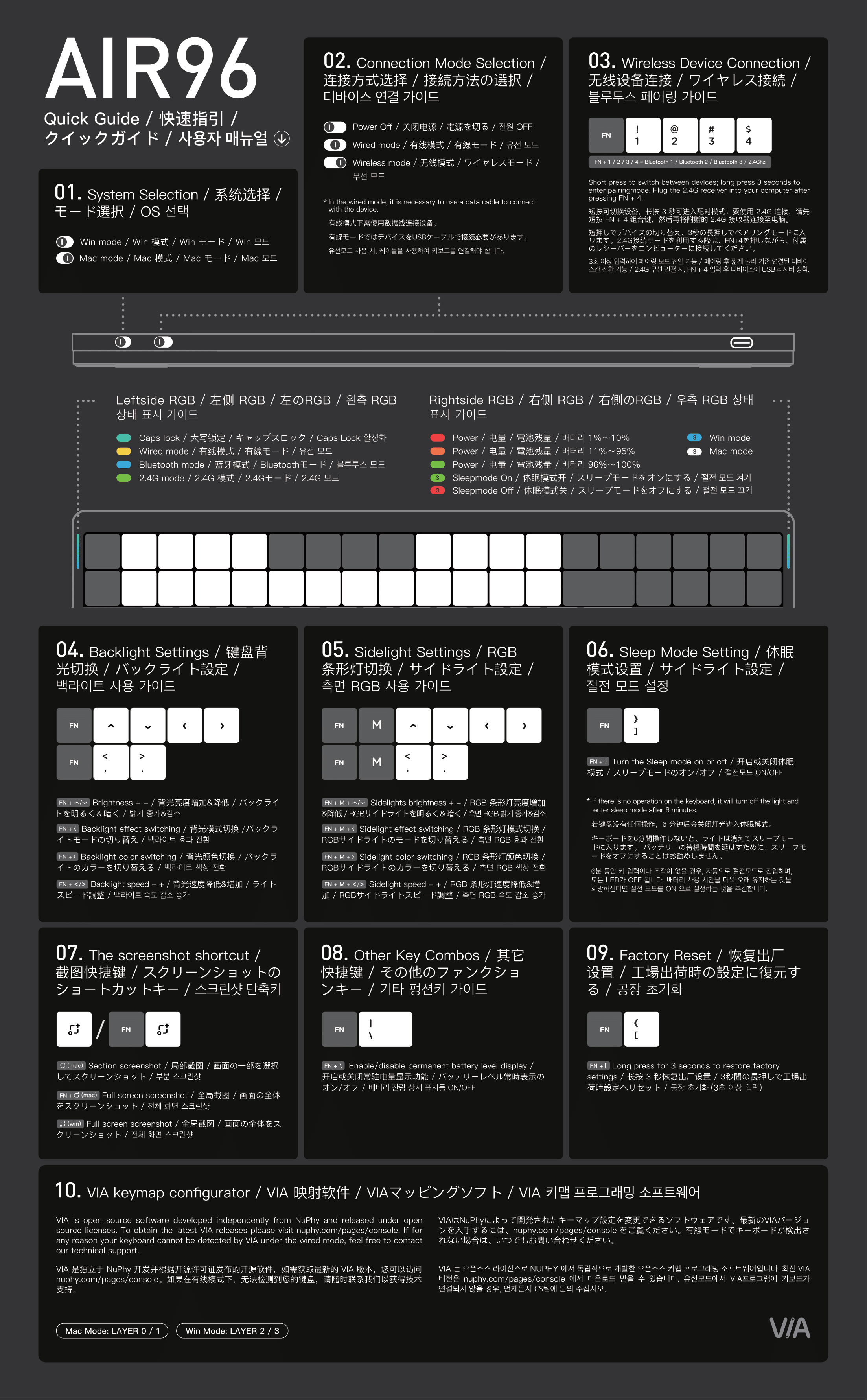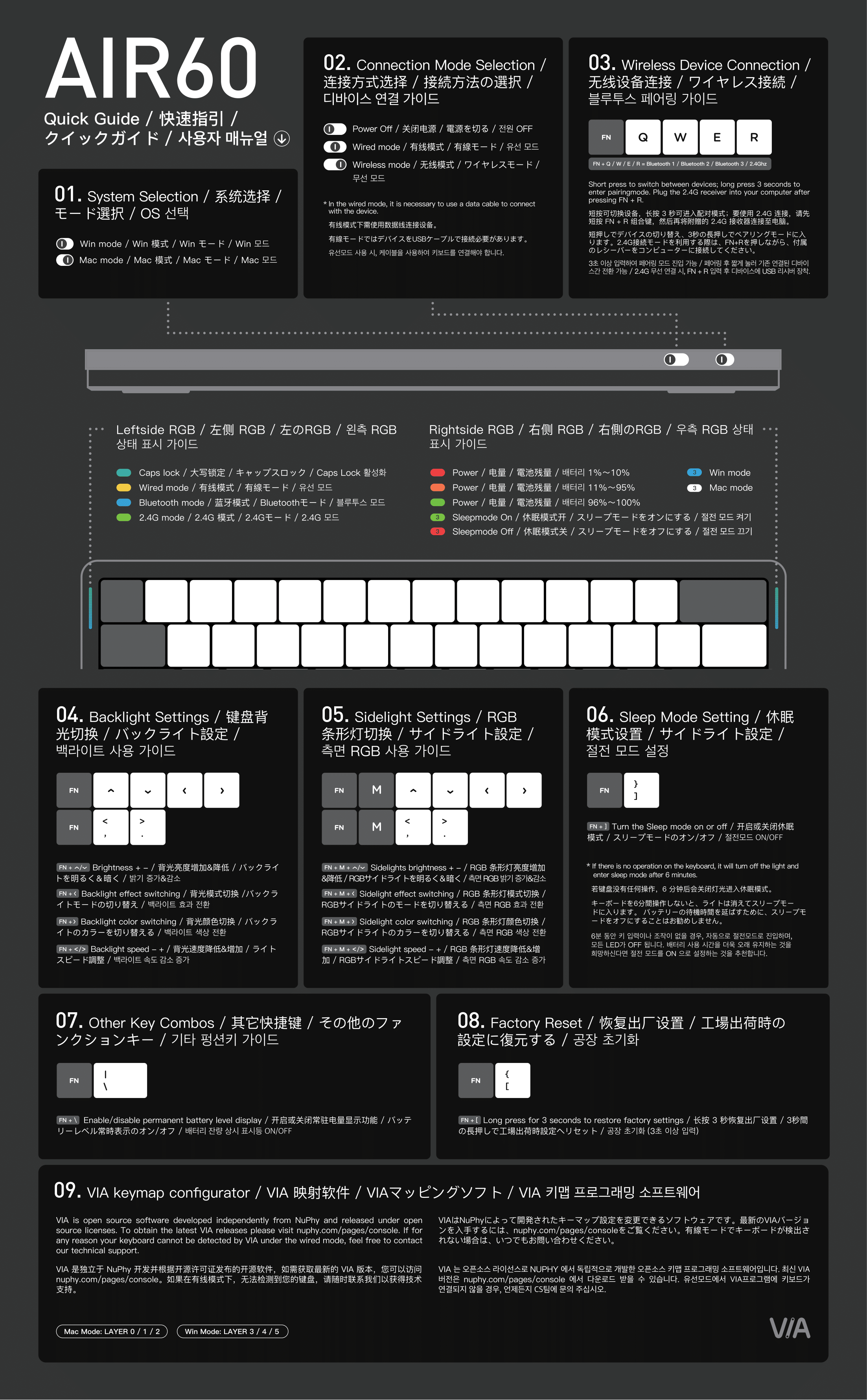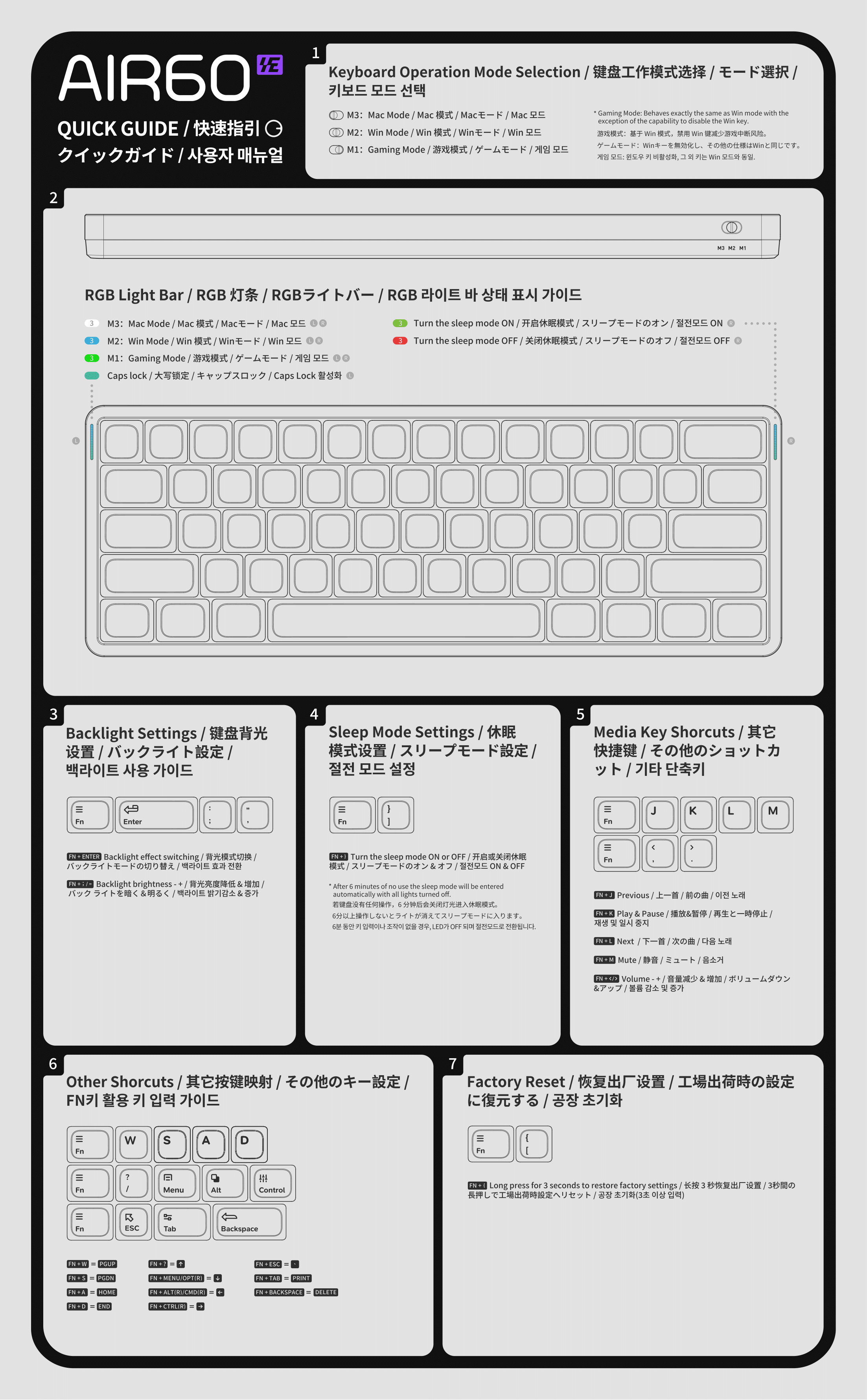 * lf there is no operation on the keyboard, it will tum off the light andenter sleep mode after 6 minutes.